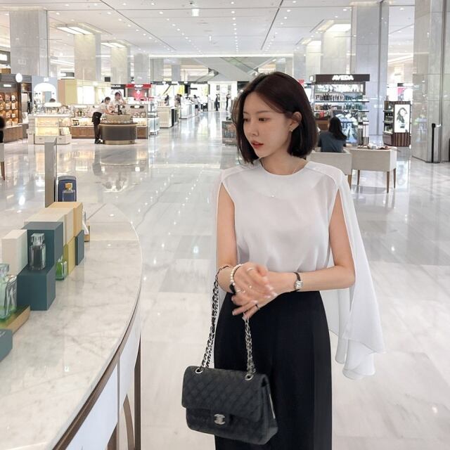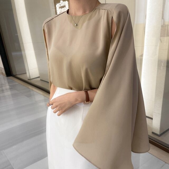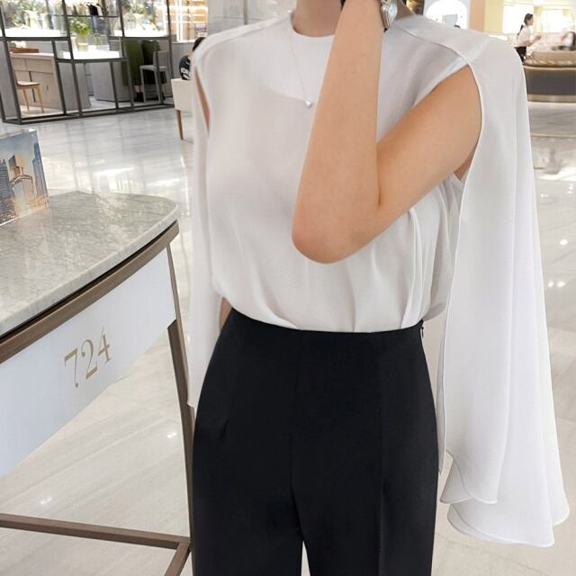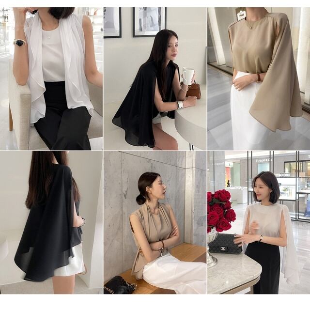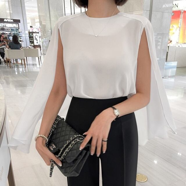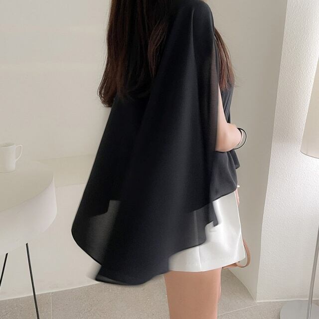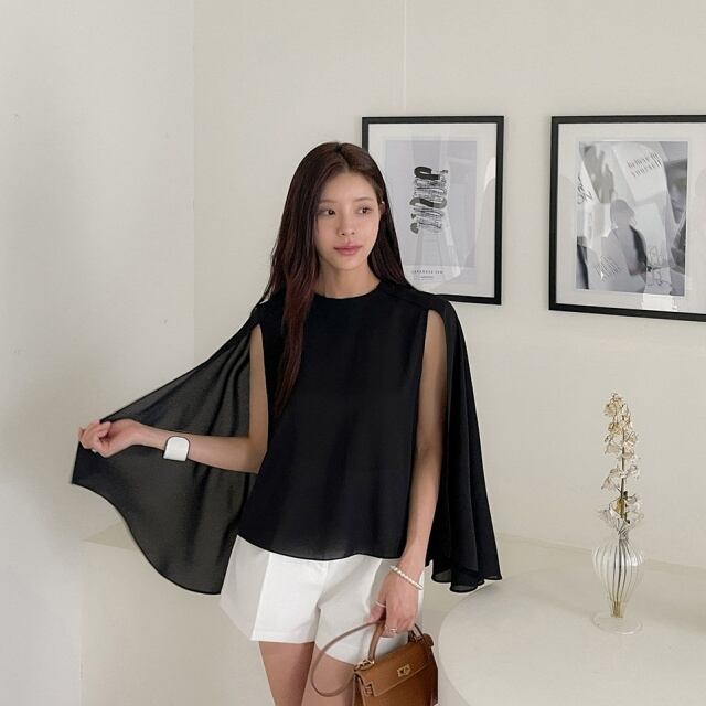 【予約販売】 ブラウス ボリュームショルダー ケープ ノースリーブ 変形 トップス レディース ビッグシルエット ブラック ホワイト ベージュ フェミニン こなれ感 体型カバー ゆったり 大人可愛い おしゃれ 韓国 通勤 OL 春 夏 デート トレンド フリー