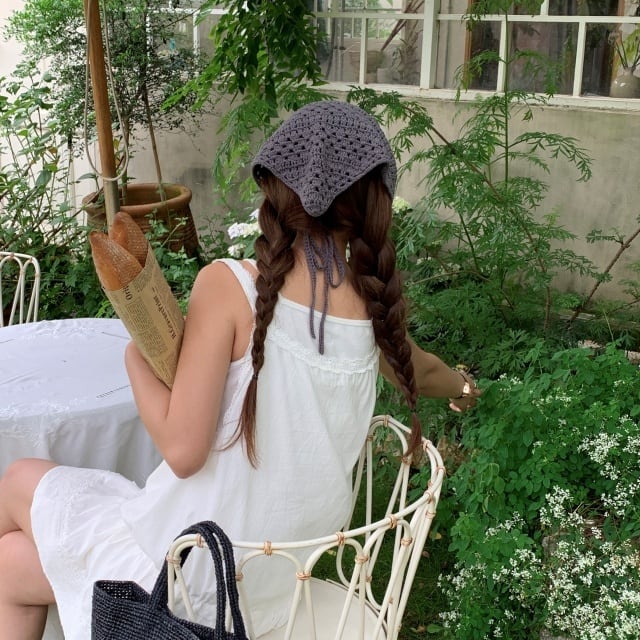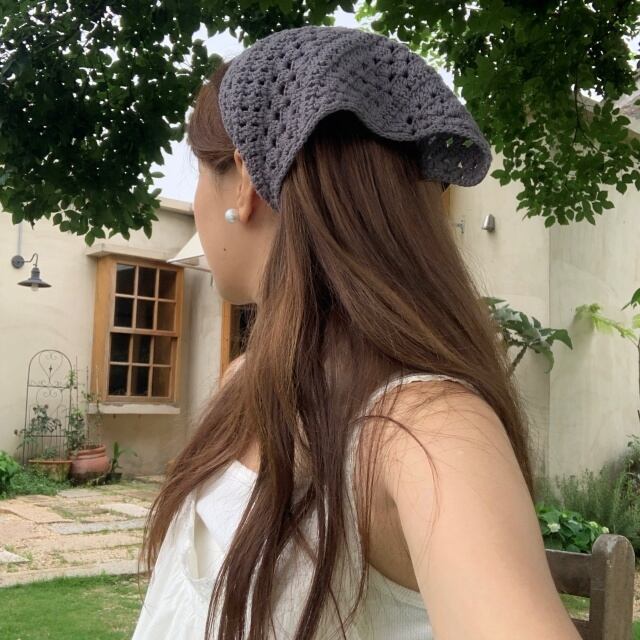 【予約販売】頭巾 ボンネット カギ編み ターバン ヘアバンド スカーフ クリーム グレー ベージュ ブラック 帽子 レディース ガーリー アウトドア 可愛い 日焼け防止 紫外線 女優帽 こなれ感 お洒落 韓国 トレンド
