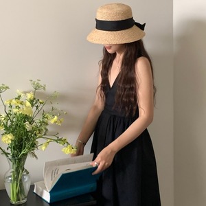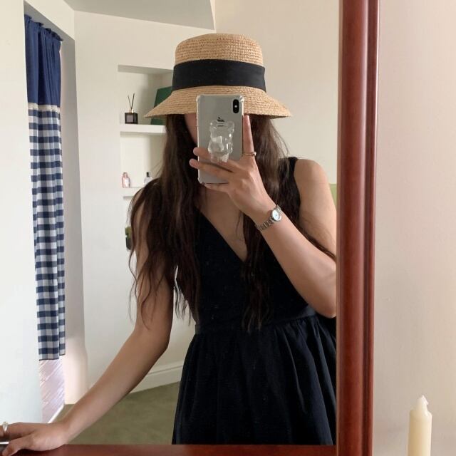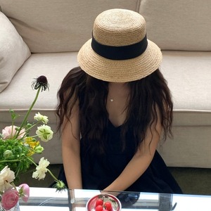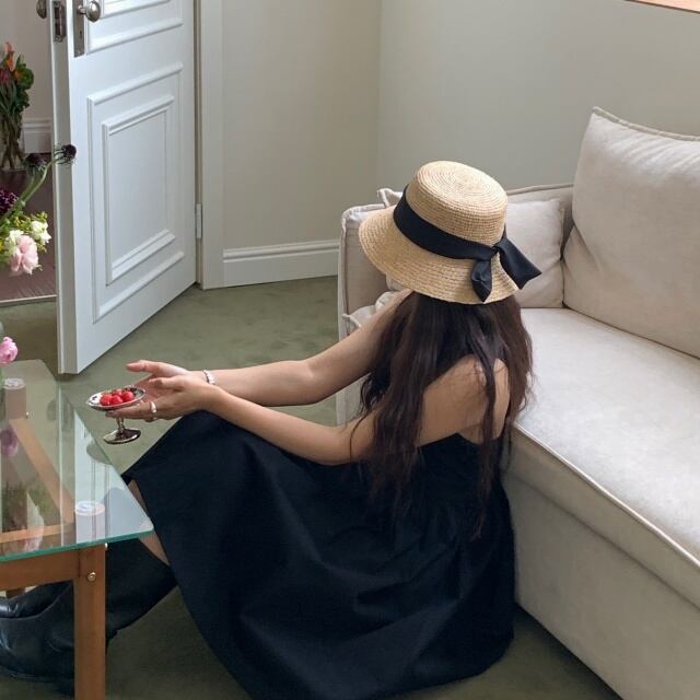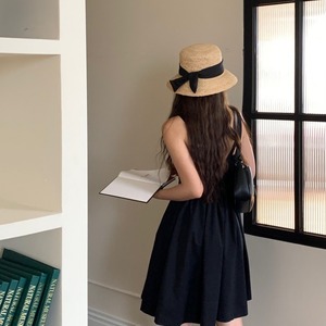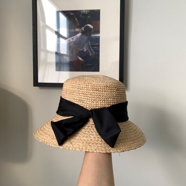 【予約販売】麦わら帽子 シンプル リボン 黒リボン 夏 ハット レディース 大人可愛い アウトドア 可愛い 日焼け防止 紫外線 女優帽 こなれ感 お洒落 韓国 トレンド