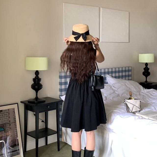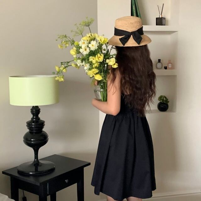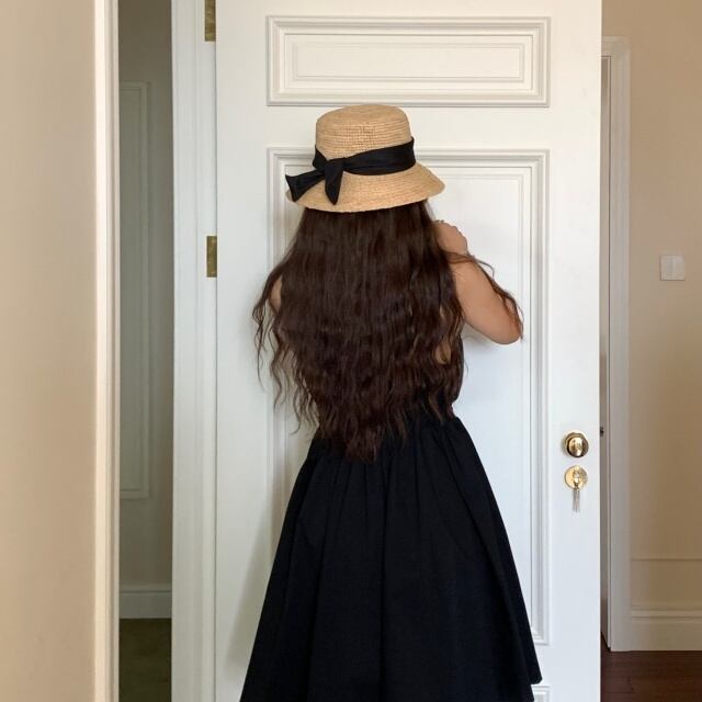 太めのブラックリボンが大人可愛くフェミニンな印象!