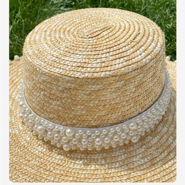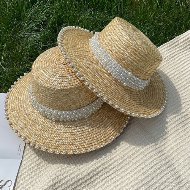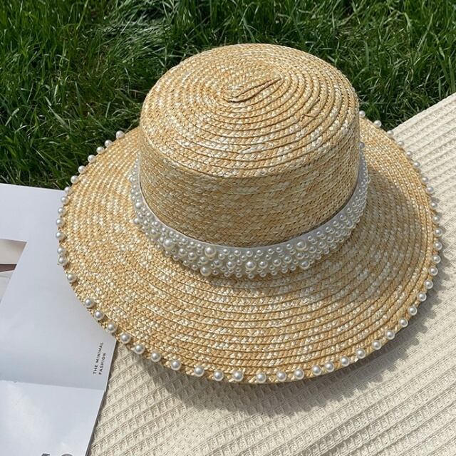 【予約販売】カンカン帽 麦わら帽子 夏 パール ハット レディース ガーリー アウトドア 可愛い 日焼け防止 紫外線 女優帽 こなれ感 お洒落 韓国 トレンド
