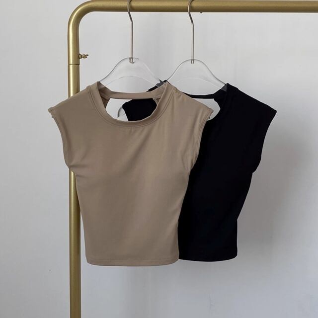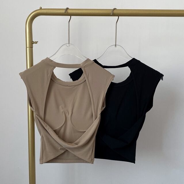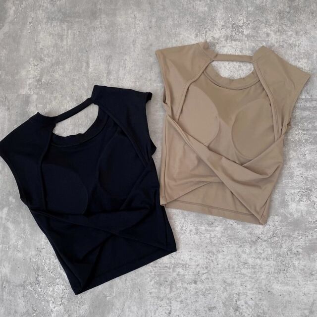 【予約販売】 トレーニングウエア トップス ノースリーブ ヨガ ジム フィットネス 背中空き カップ付き レディース おしゃれ 韓国 トレンド S/M/L/XL
