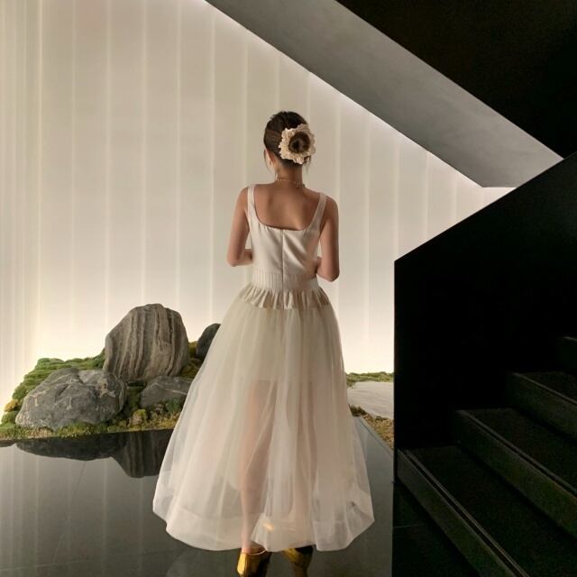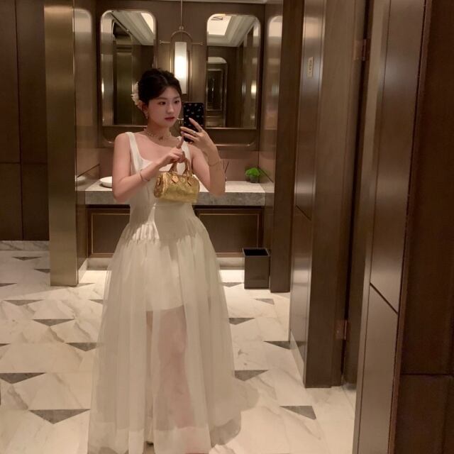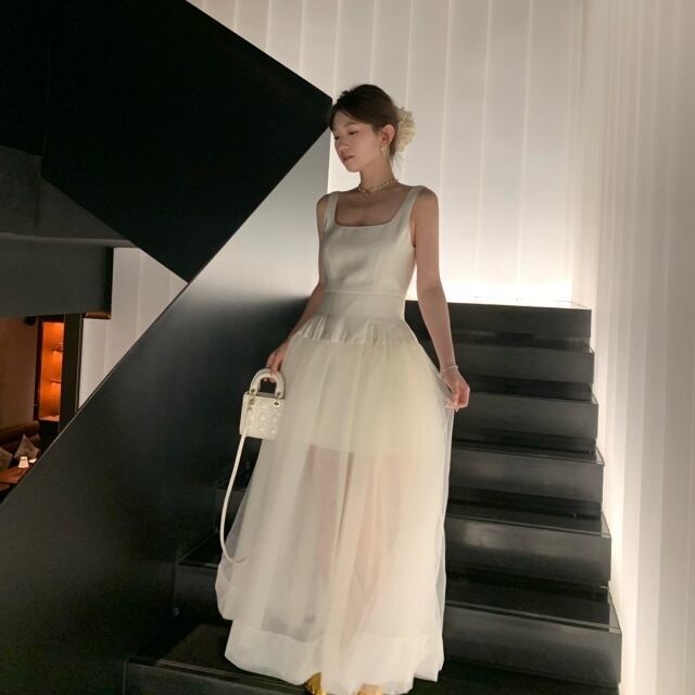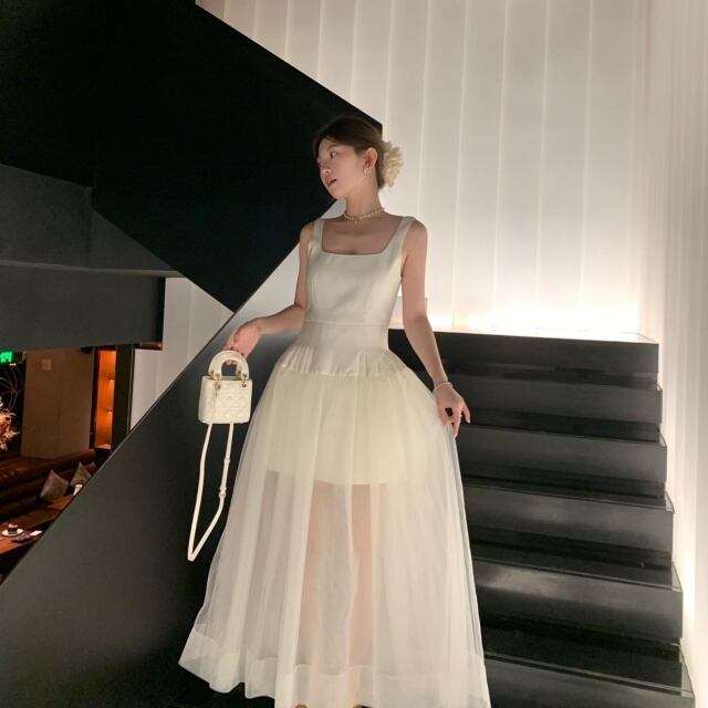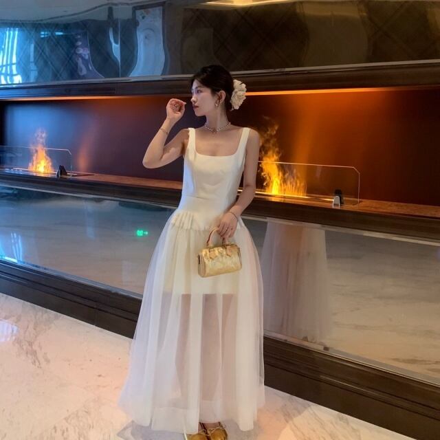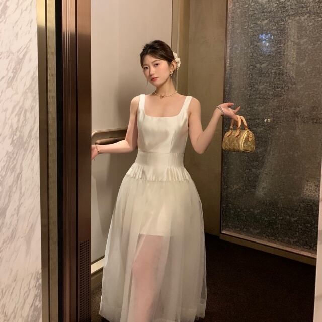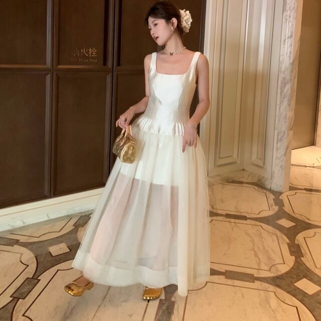 【予約販売】ワンピース レディース ノースリーブ シアー 透け感 フレア ロングワンピース ホワイト こなれ感 パーティー 結婚式 ワンピ 大人可愛い ドレス エレガント上品 韓国 S/M/L