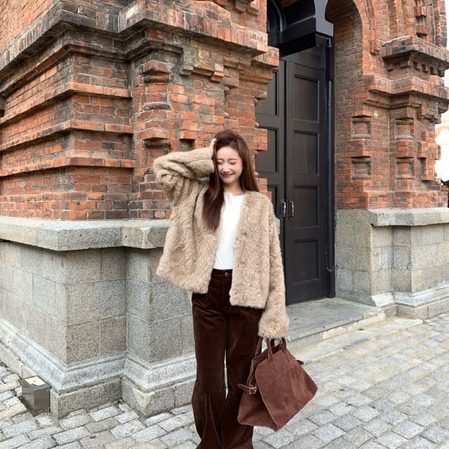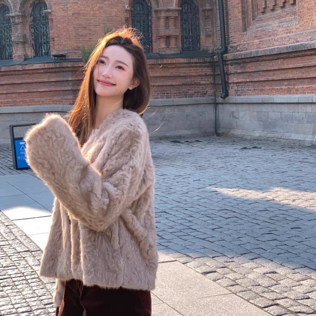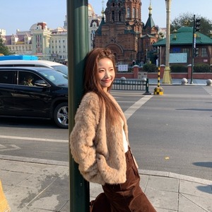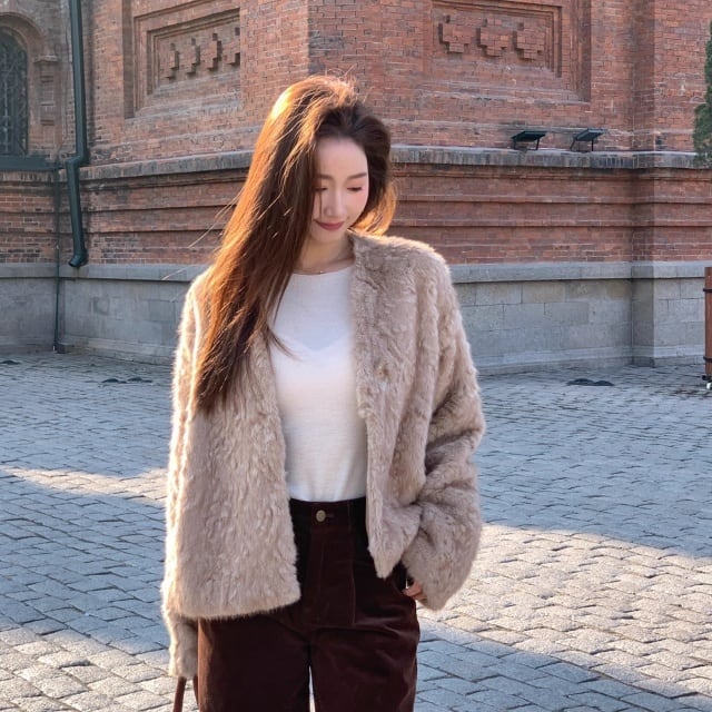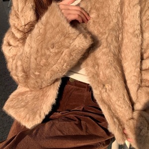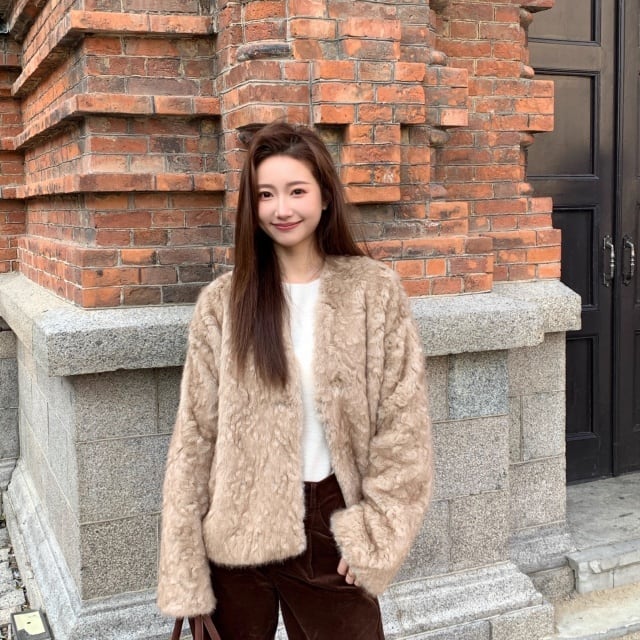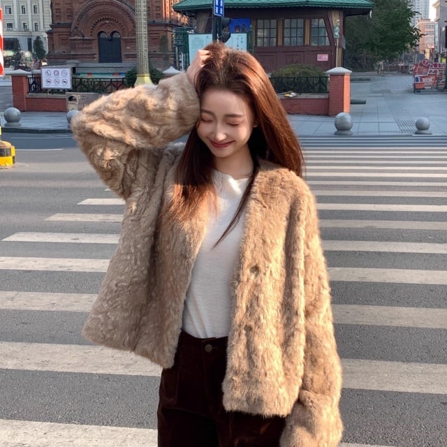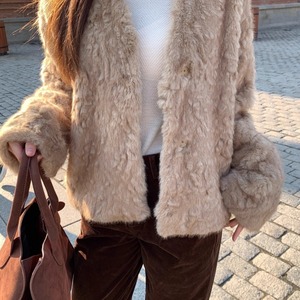 【予約販売】ファージャケット レディース アウター もこもこ ノーカラー ベージュ ショート丈 こなれ感 大人可愛い ゴージャス エレガント おしゃれ 韓国 トレンド S/M/L