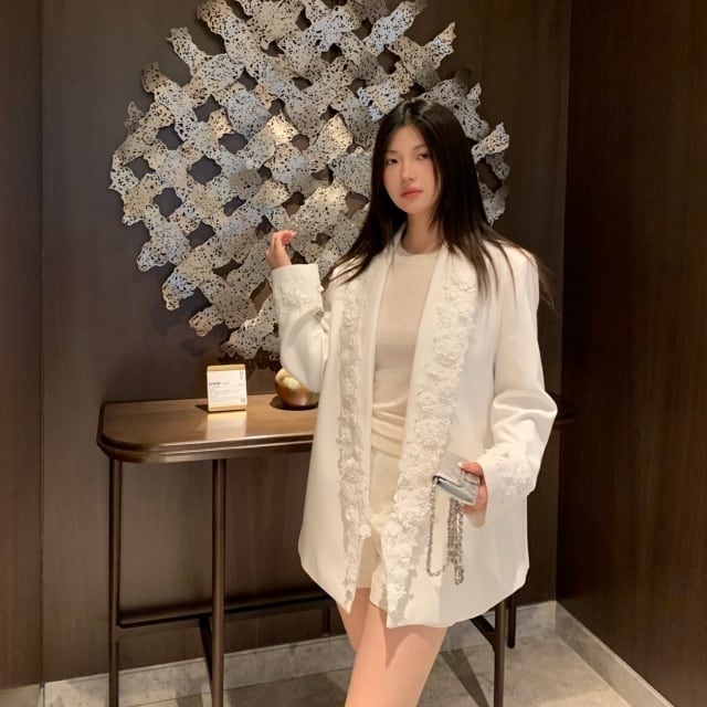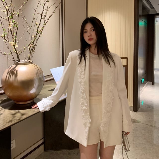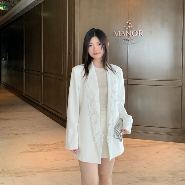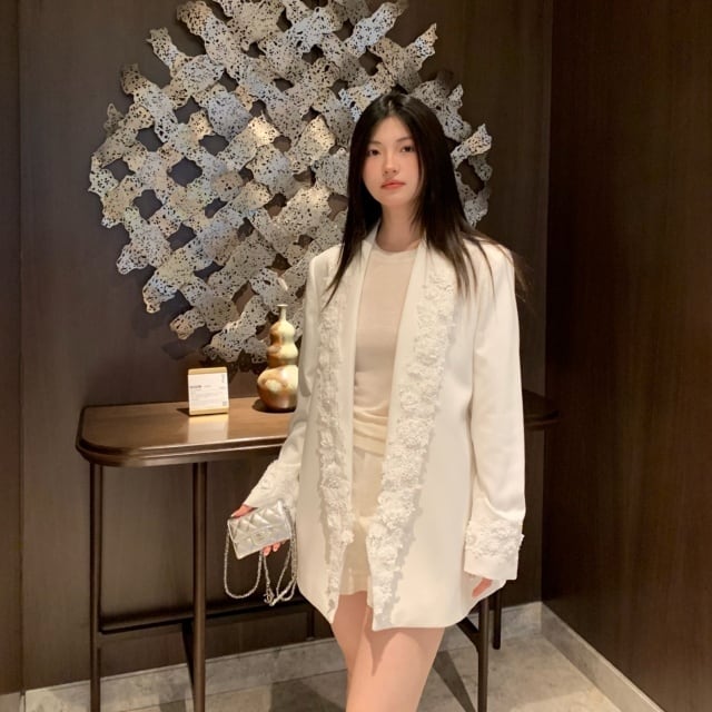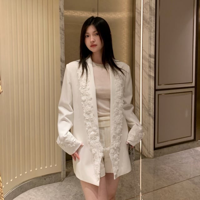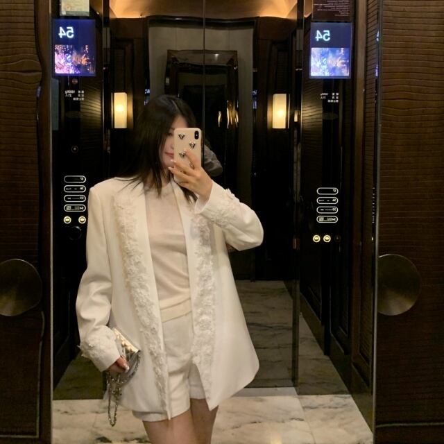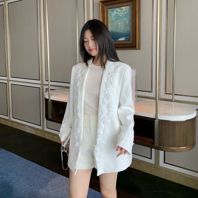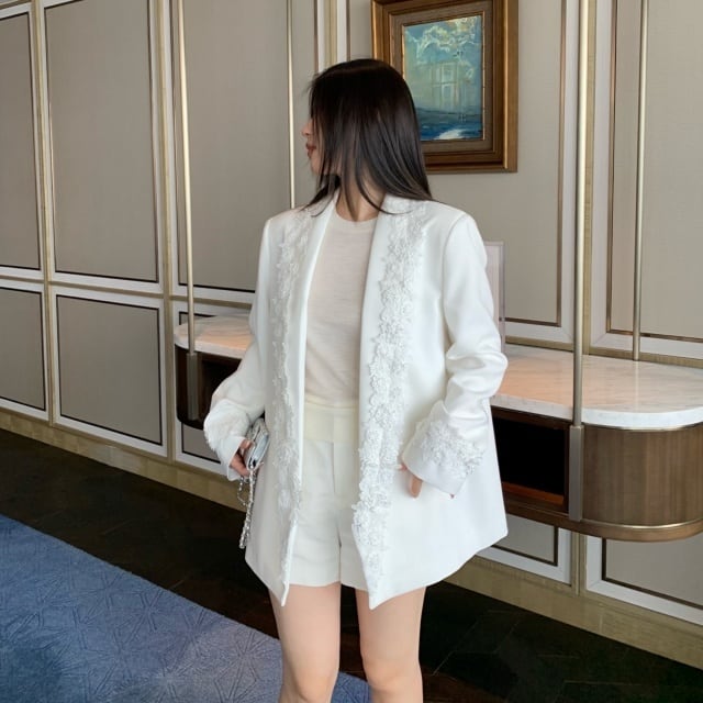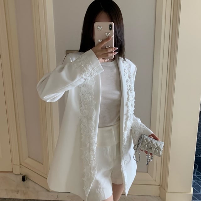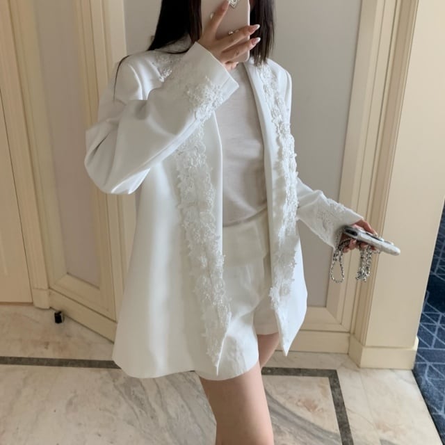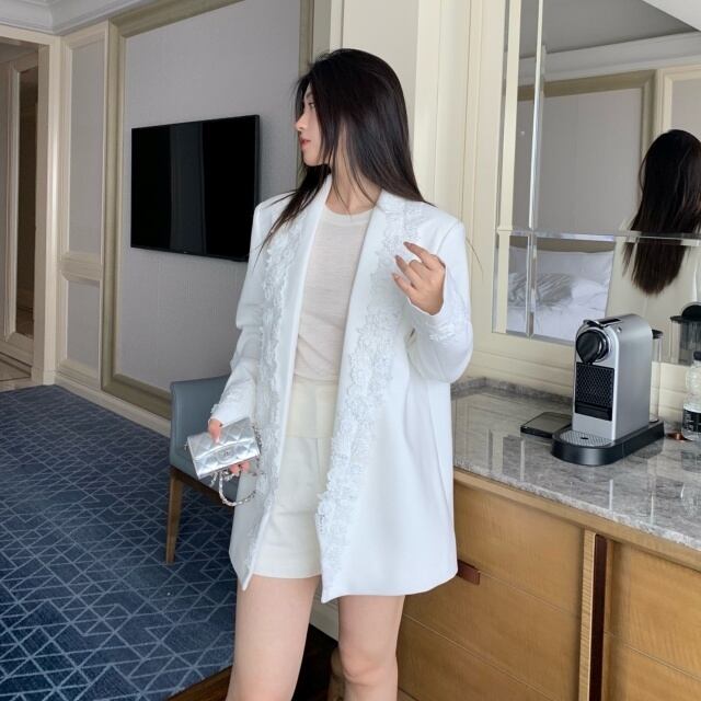 【予約販売】ジャケット オーバーサイズ レディース 白 ホワイト レース 花 こなれ感 大人可愛い ドレスアップ 結婚式 おしゃれ 韓国 トレンド S/M/L