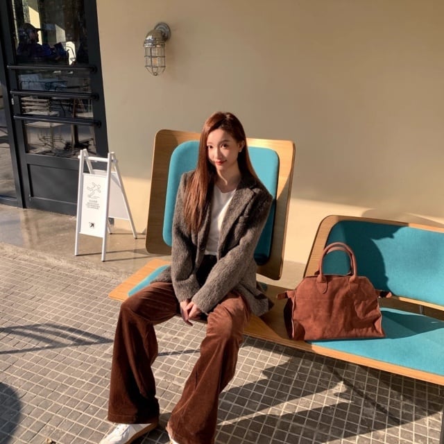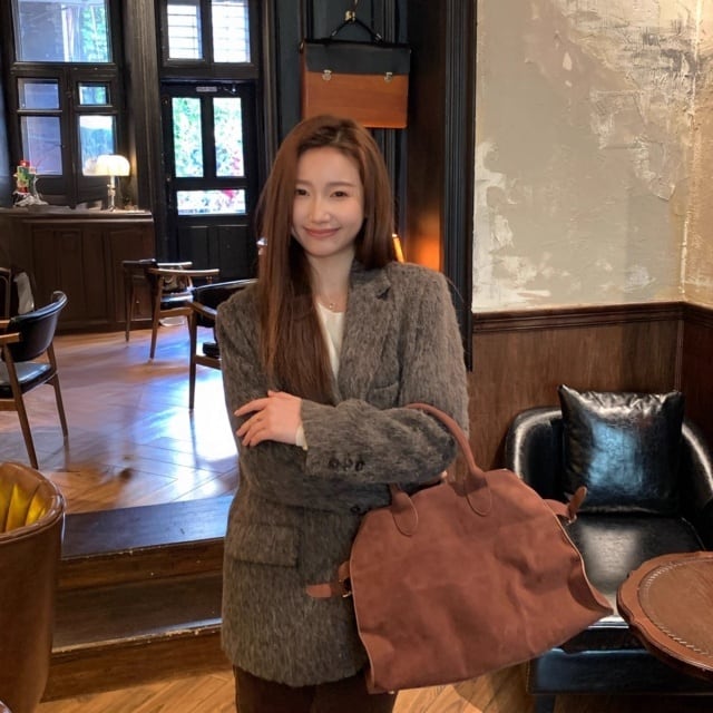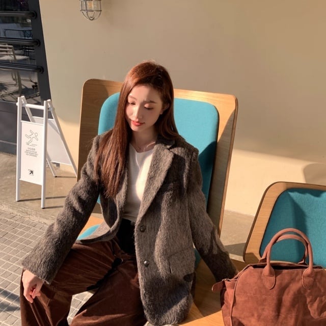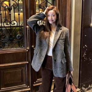 【予約販売】ジャケット オーバーサイズ レディース ブラウン シングル モヘア風 シンプル カジュアル こなれ感 大人可愛い ドレスアップ 結婚式 おしゃれ 韓国 トレンド S/M/L