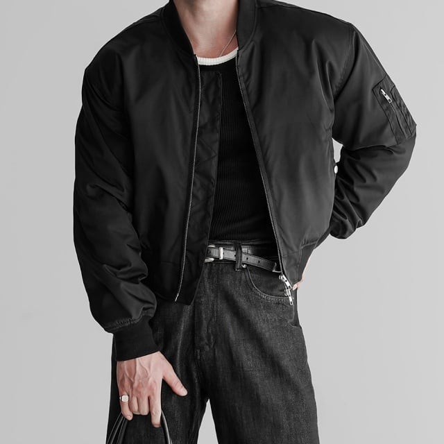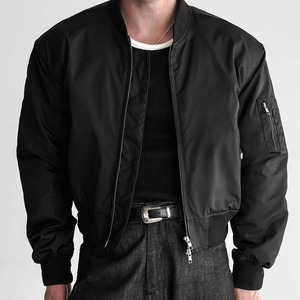 【予約販売】MA-1 ブルゾン メンズ 無地 ブラック ショート丈 ジャケット シンプル 防寒 お洒落 こなれ感 ベーシック 秋冬 M/L/XL