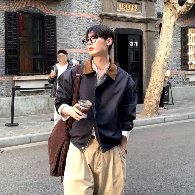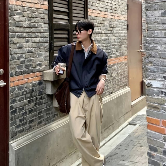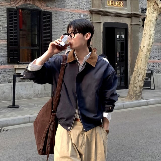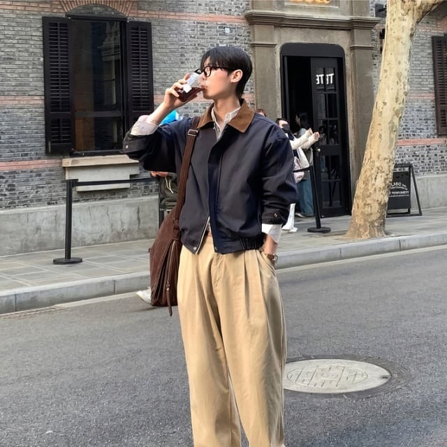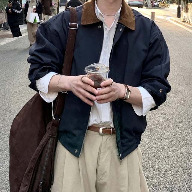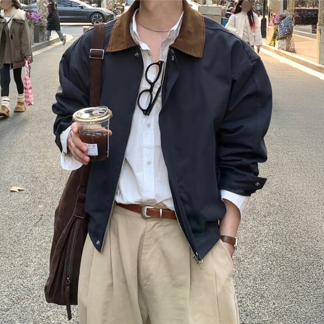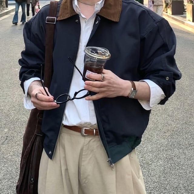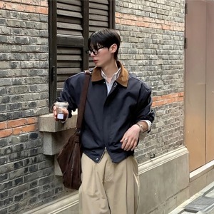 【予約販売】 ブルゾン 長袖 襟 アウター ショート丈 メンズ ネイビー 無地 お洒落 こなれ感 韓国 ベーシック 秋 冬 M/L/XL