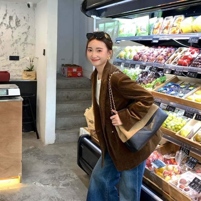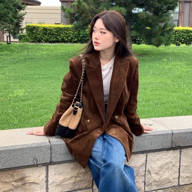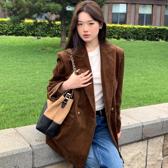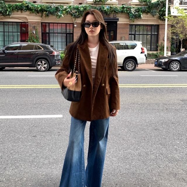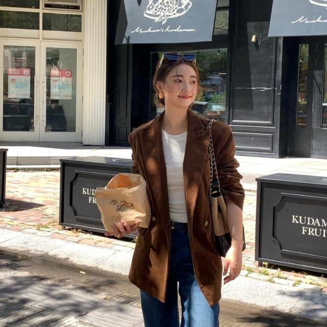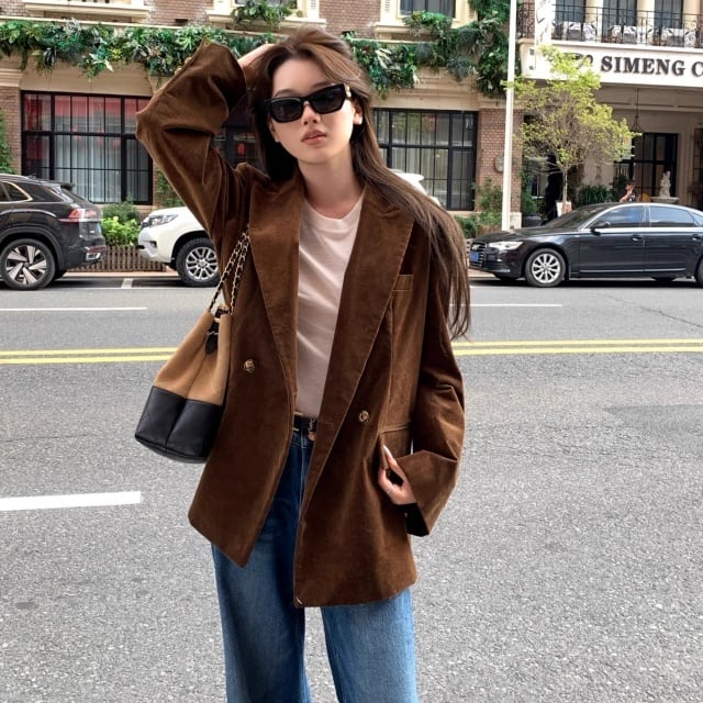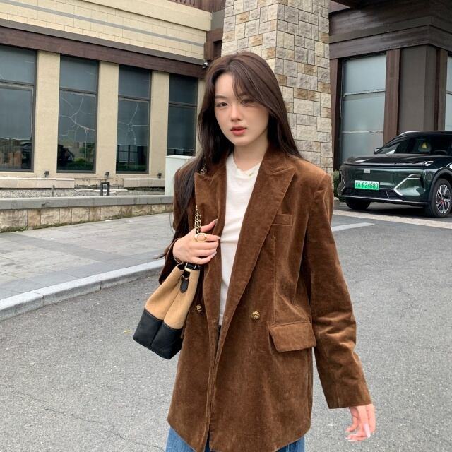 【予約販売】ジャケット レディース アウター コーデユロイ ブラウン シンプル カジュアル こなれ感 大人可愛い 通勤 シック おしゃれ 韓国 トレンド S/M/L