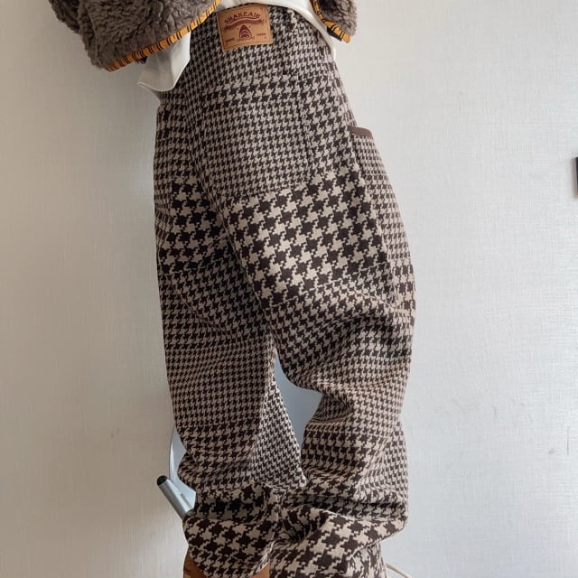 【予約販売】パンツ 千鳥格子柄 ブラウン 暖かい ゆったり ボトムス メンズ カジュアル パンツ ダンス ストリート ルーズ こなれ感 お洒落 韓国 トレンド M/L/XL/2XL