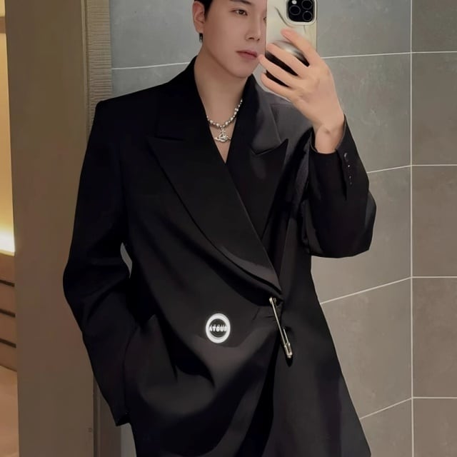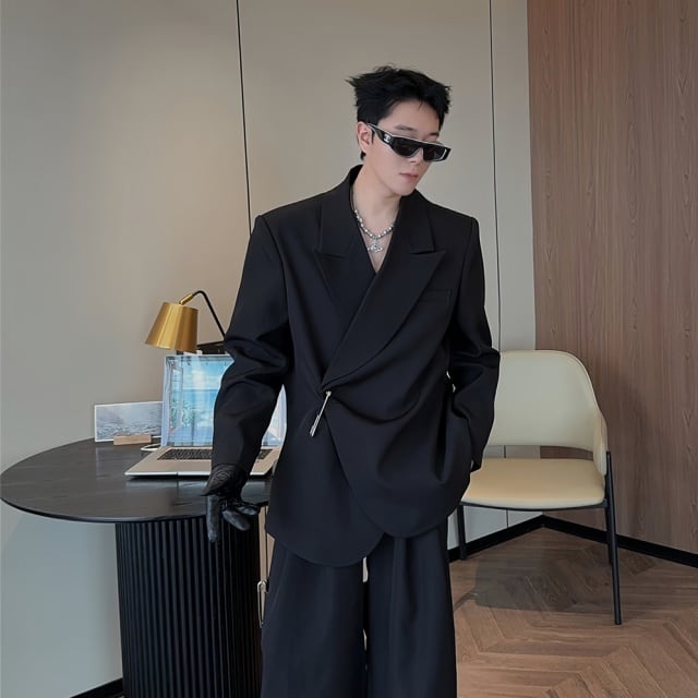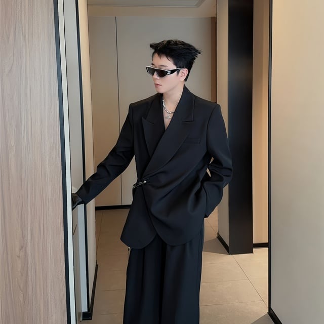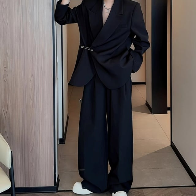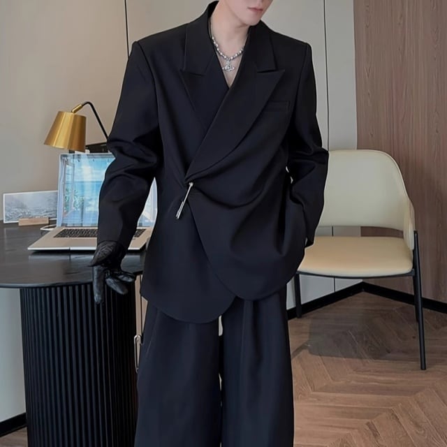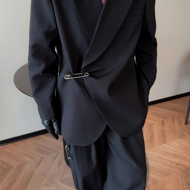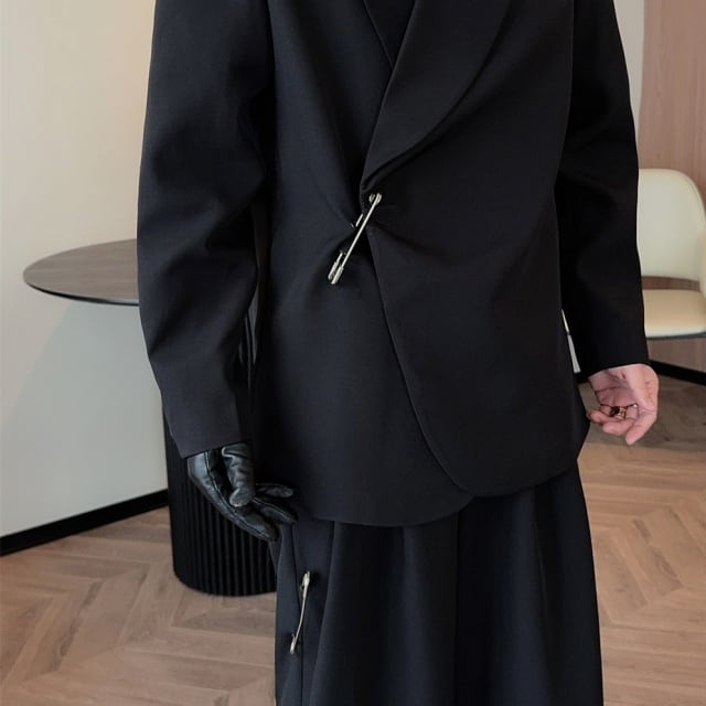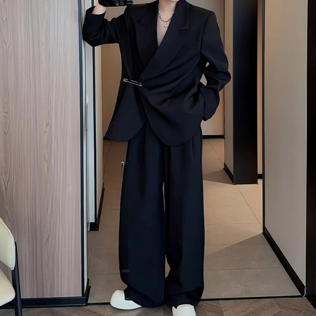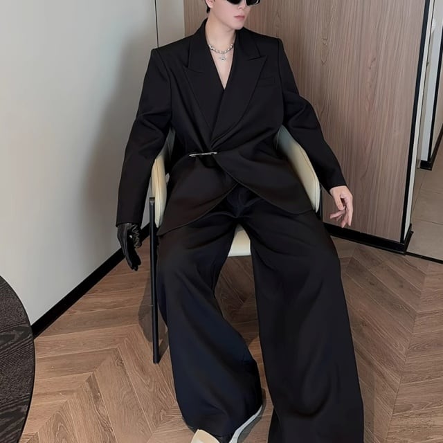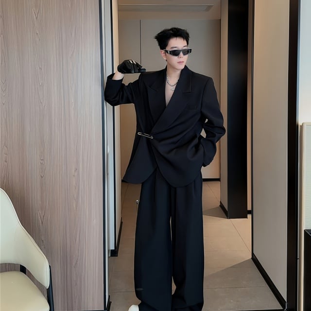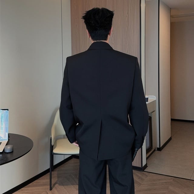 【予約販売】2点セット スーツ メンズ セットアップ 長袖 ジャケット 男前 ブラック 黒 上下 パーティ お出かけ パーティー 二次会 結婚式 夏 M/L/XL