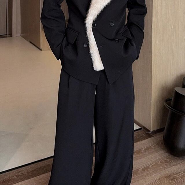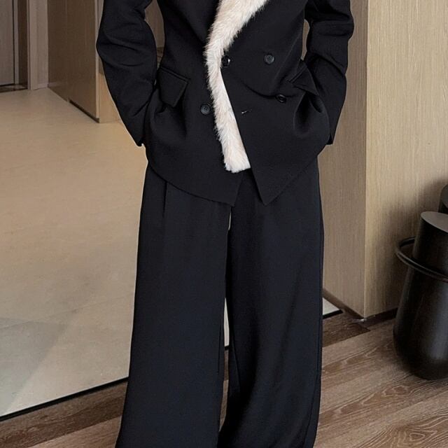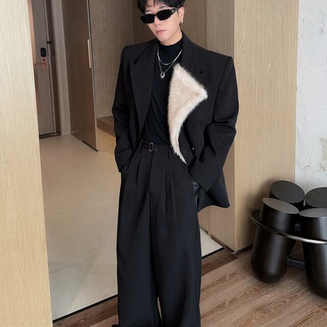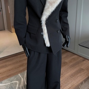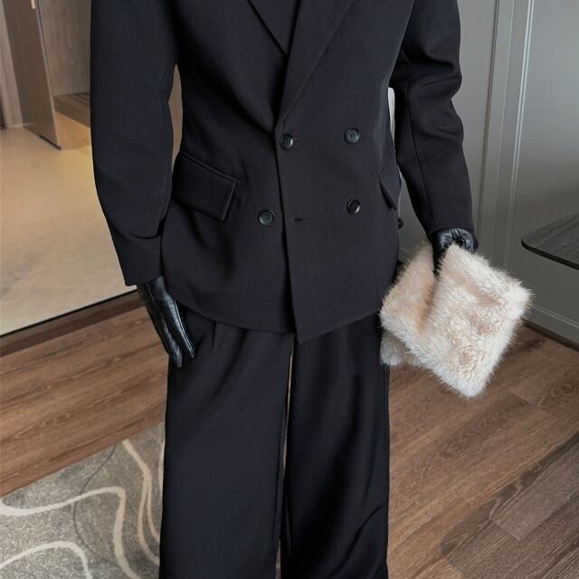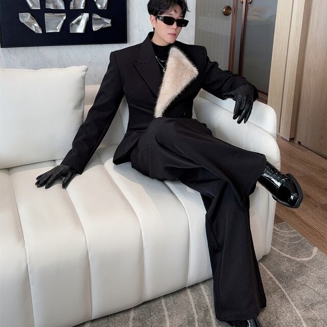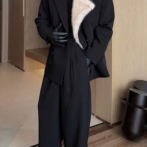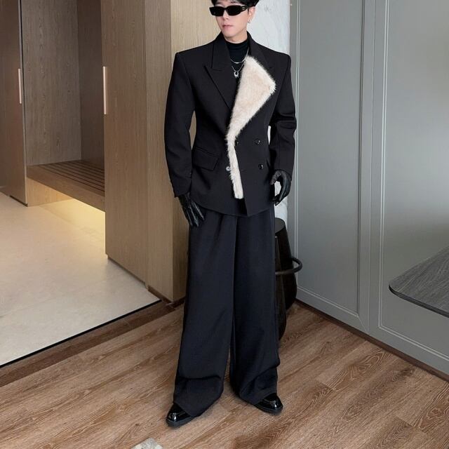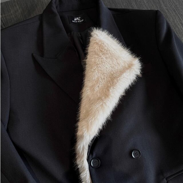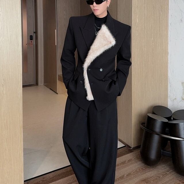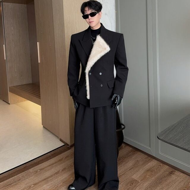 【予約販売】ジャケットファー 無地 モード 個性的 ダブル メンズ ブラック ドレスアップ シック 結婚式 パーティー こなれ感 お洒落 韓国 トレンド M/L/XL