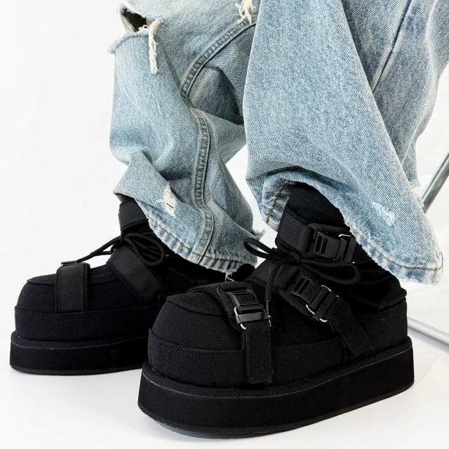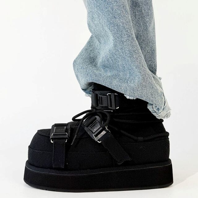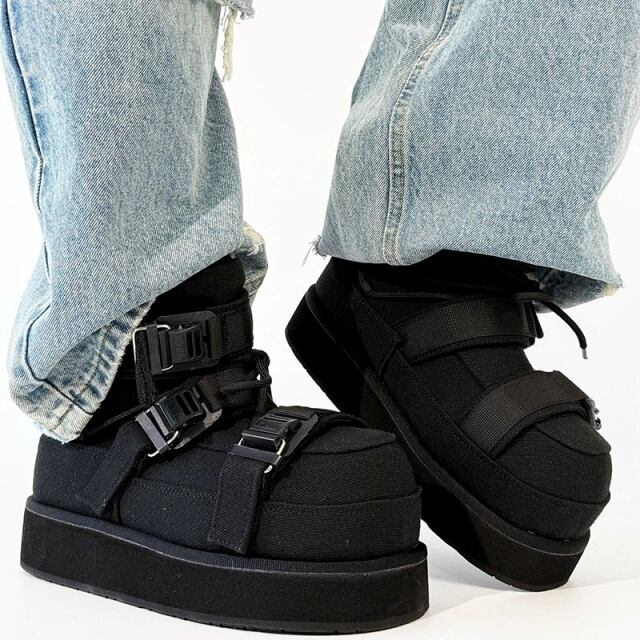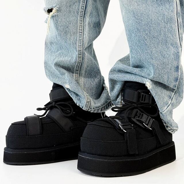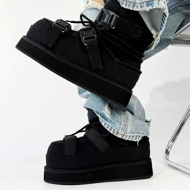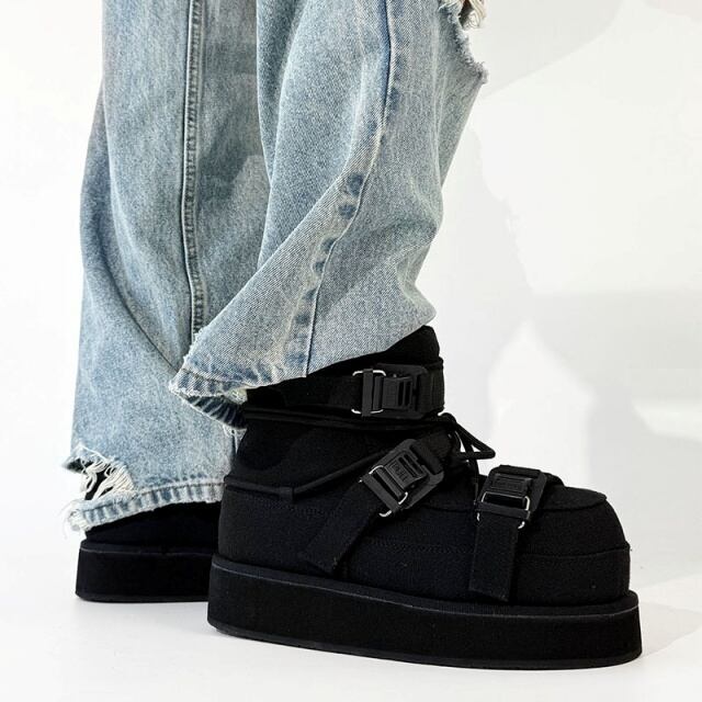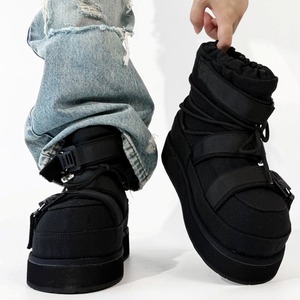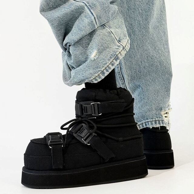 【予約販売】ブーツ メンズ スノーブーツ ショート 長靴 防寒 厚底 ブラック 黒 シンプル お洒落 カジュアル ストリート 冬 24.5cm/25cm/25.5cm/26cm/26.5cm/27cm