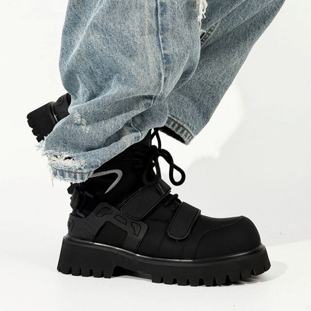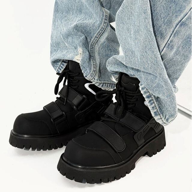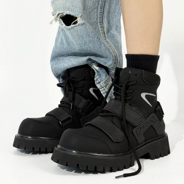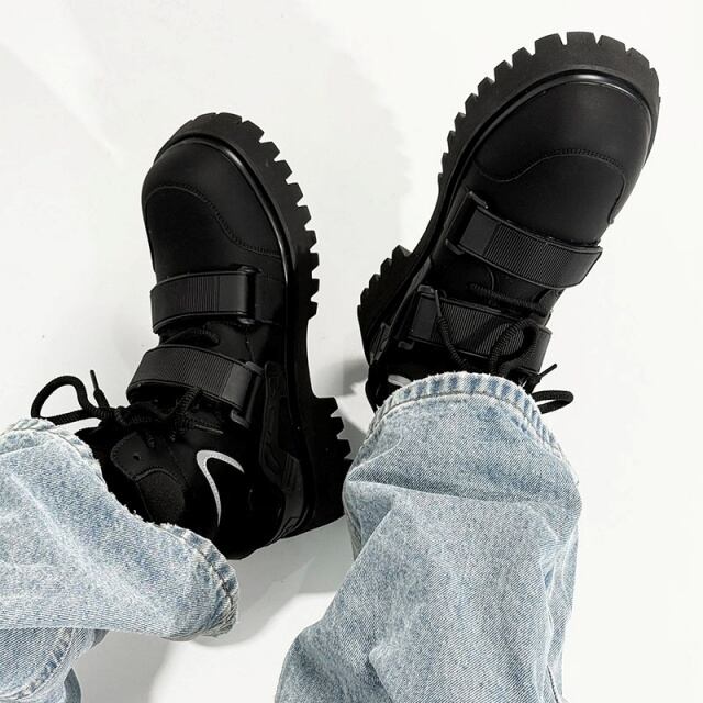 【予約販売】ブーツ メンズ ワークブーツ 長靴 防寒 厚底 ブラック 黒 シンプル お洒落 カジュアル ストリート 冬 24.5cm/25cm/25.5cm/26cm/26.5cm/27cm