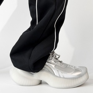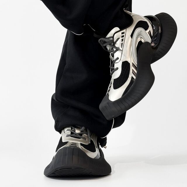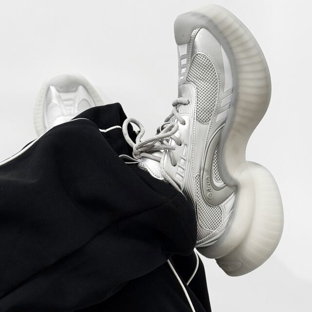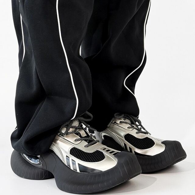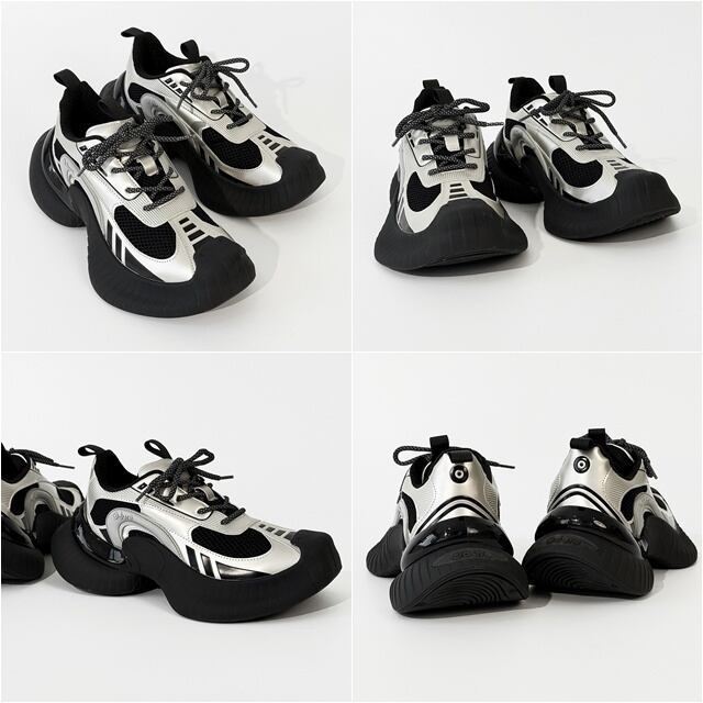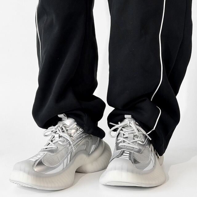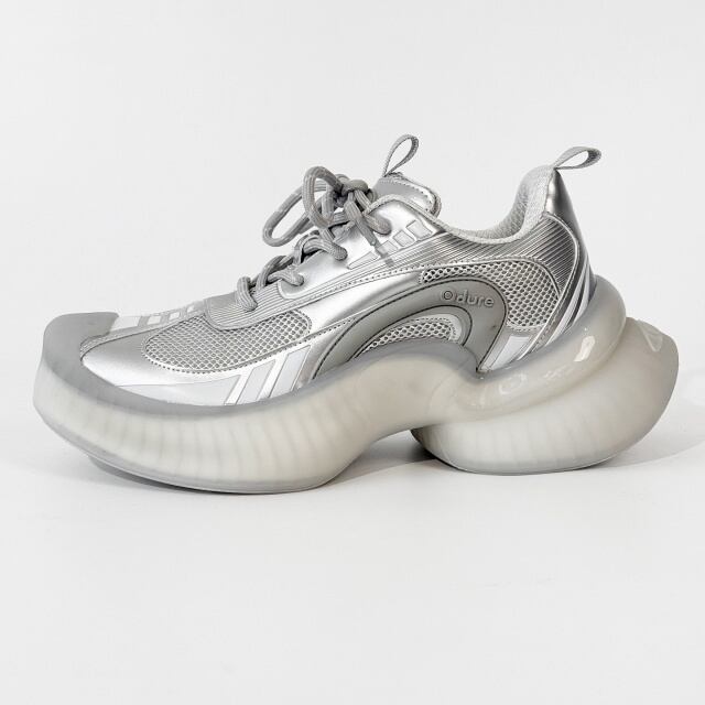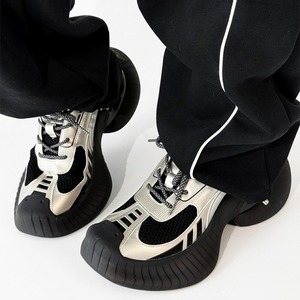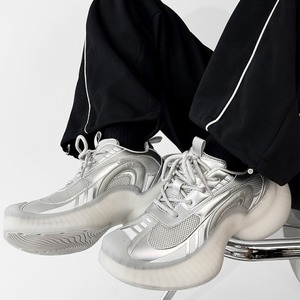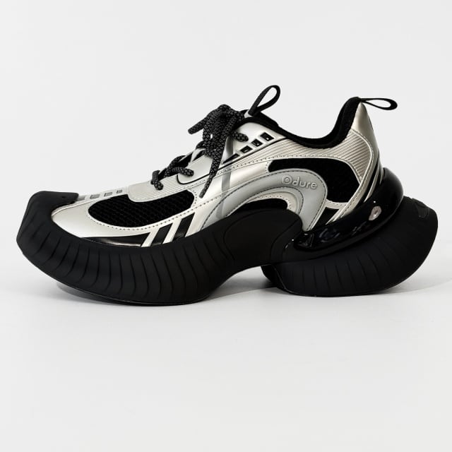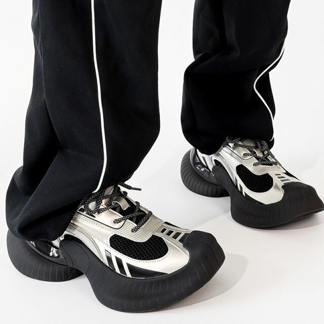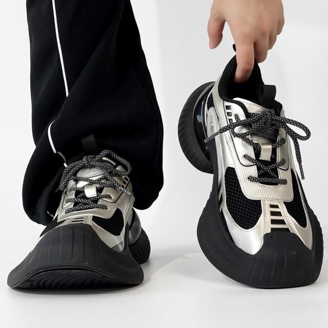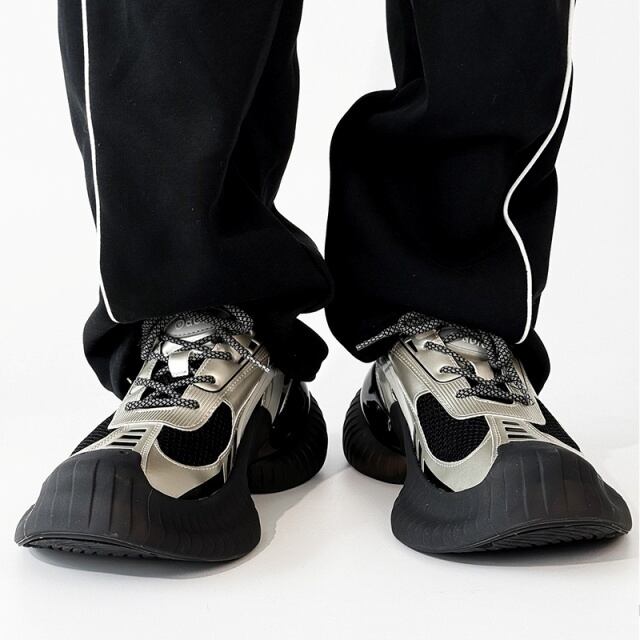 【予約販売】スニーカー 韓国 メンズ ゴツ底 厚底 靴 シルバー ブラック デザイン お洒落 カジュアル ストリート 24.5cm/25cm/25.5cm/26cm/26.5cm/27cm