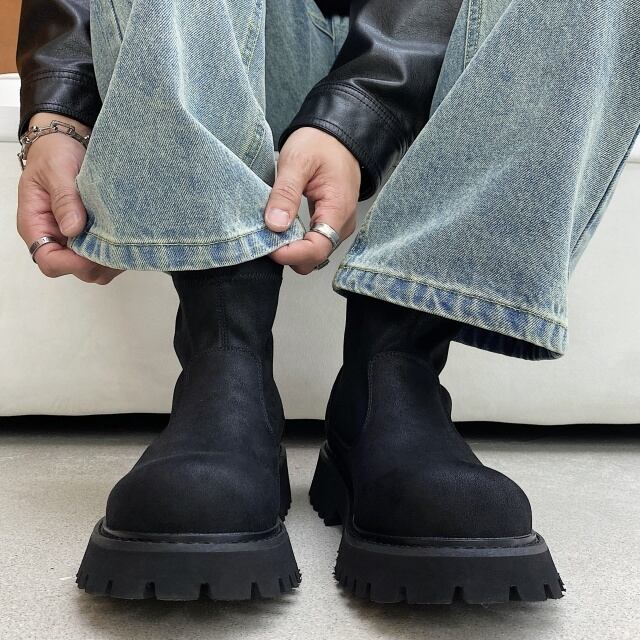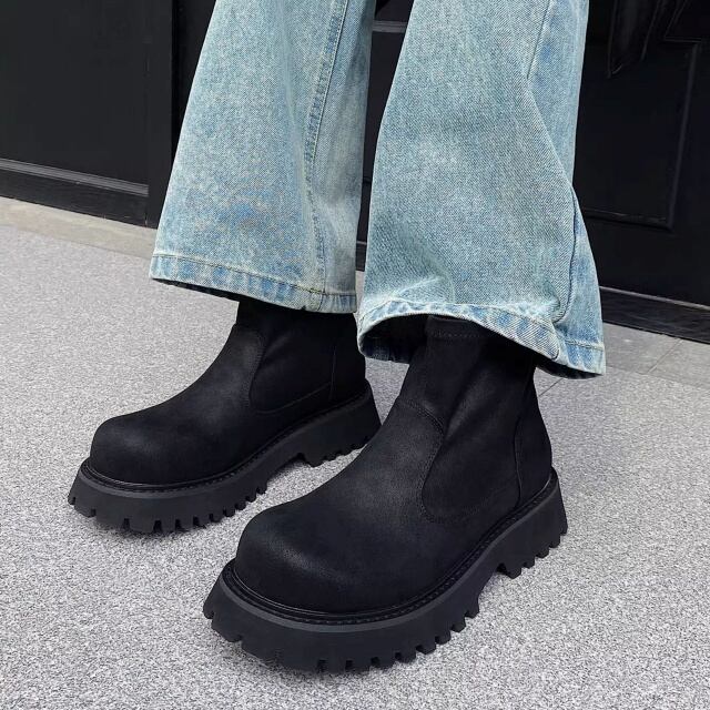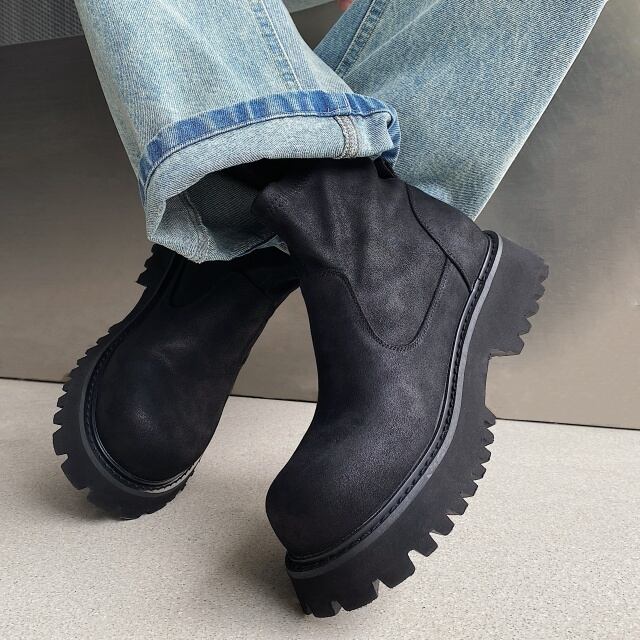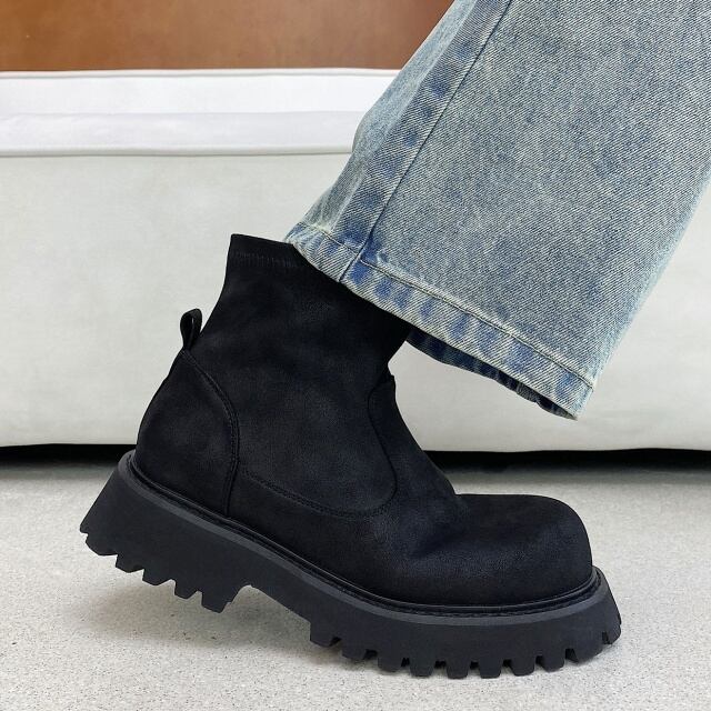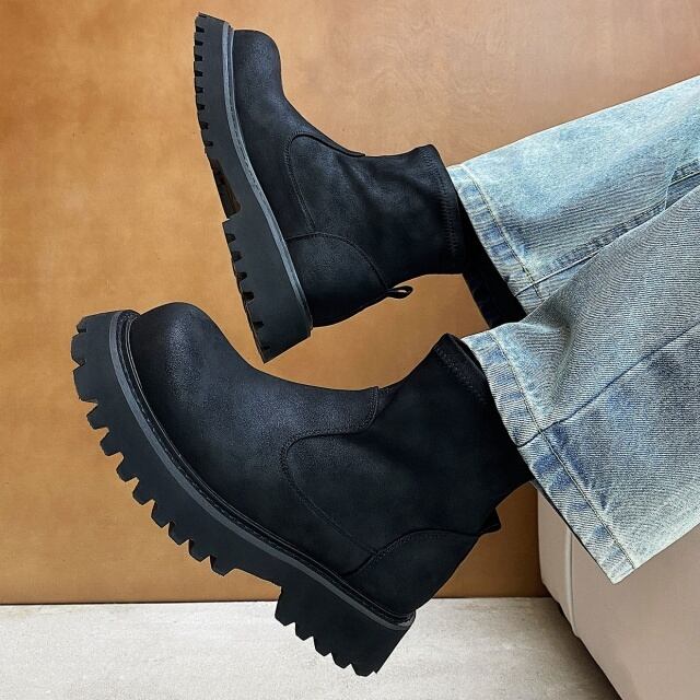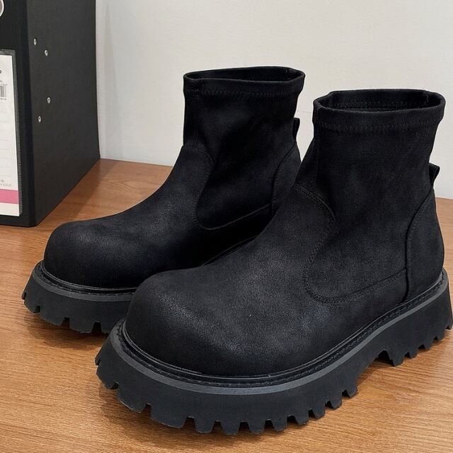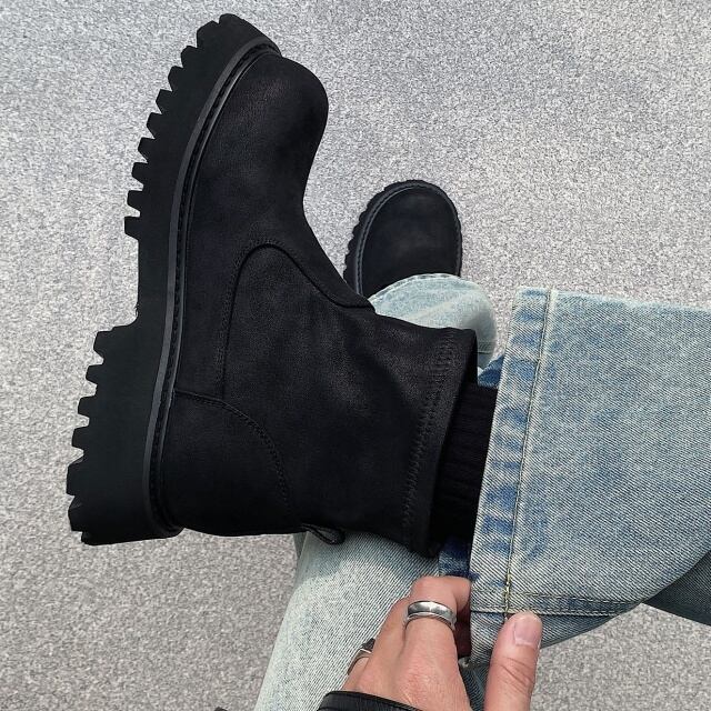 【予約販売】ブーツ スエード シンプル ベーシック 靴 ブラック 黒 ハイカット お洒落 韓国 トレンド カジュアル 24cm/24.5cm/25cm/25.5cm/26cm/26.5cm/27cm