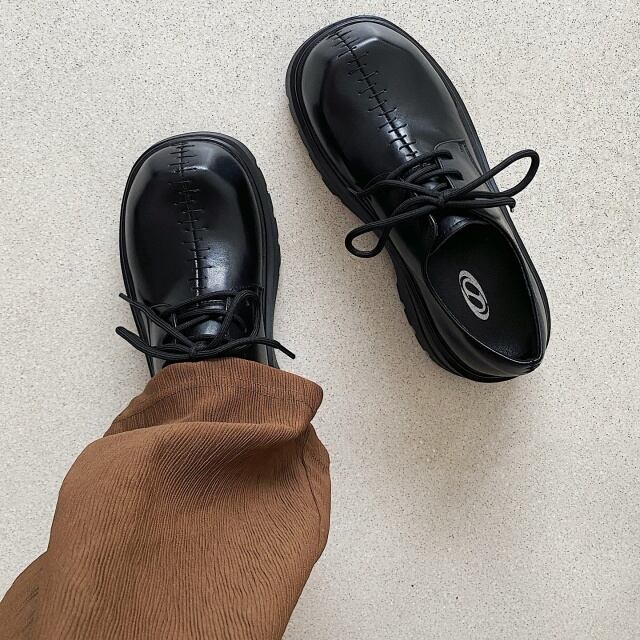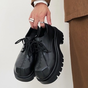 【予約販売】ローファー シンプル ベーシック メンズ ゴツ底 7cm モノトーン 厚底 靴 ブラック 黒 デザイン お洒落 カジュアル 結婚式 シック 通勤 韓国 24cm/24.5cm/25cm/25.5cm/26cm/26.5cm/27cm