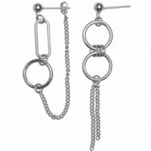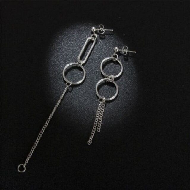 送料無料 ピアス レディース ゆれる ピアス メンズ フープ BTS ロングピアス スタッドピアス ピアス アシンメトリー シルバー [A00006]
