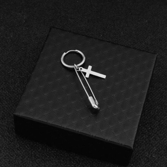 人気 フープピアス メンズ 片耳 1個 BTS 十字架 クロス ステンレス 金属アレルギー 揺れる ピアス レディース かわいい 安全ピンモチーフ [A00041]