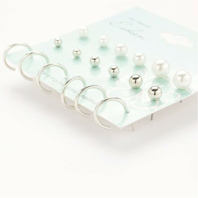 送料無料 ピアス メンズ レディース 男女共用 フープピアス シルバー/ゴールド 真珠 パール 9ペアセット 激安 [A00050]