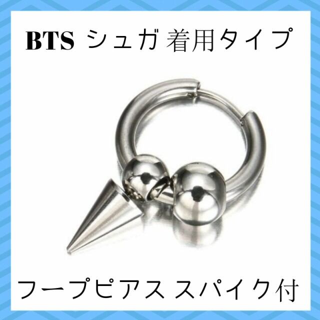 大人気 ピアス BTS 防弾少年団 SUGA シュガ ピアス 片耳 メンズ レディース 男女共用 フープピアス 18G スパイク シルバー メタルボール [A00066]