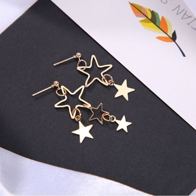 ピアス レディース 星 スター ピアス ゆれる かわいい アシンメトリー ピアス ドロップピアス スタッドピアス ゴールド シルバー [A00170]