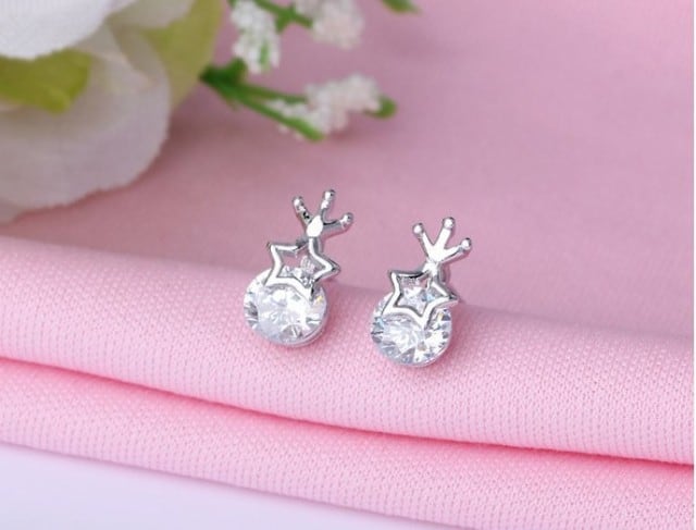 可愛い ピアス レディース 星 王冠 クラウン ピアス シルバー925 スタッドピアス プラチナコーティング ビジュー Silver925 大人可愛い [A00256]