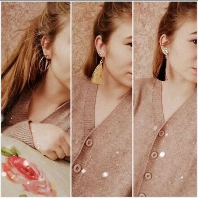 フリンジピアスとシルバーのフープピアスは