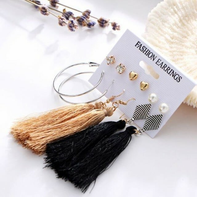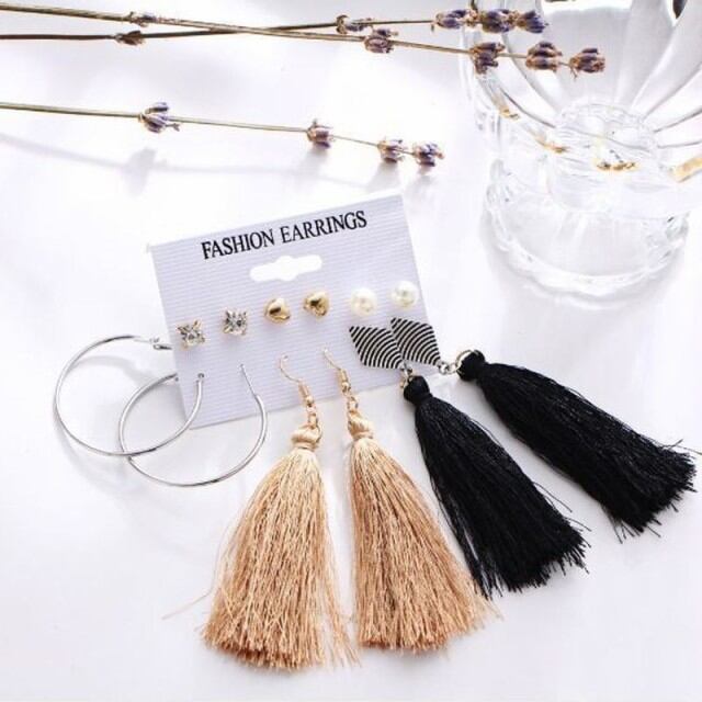 送料無料 ピアス レディース ゆれる かわいい フリンジピアス パール ピアス フープピアス ピアスセット 6ペア ピアス 安い ボヘミアン [A00272]