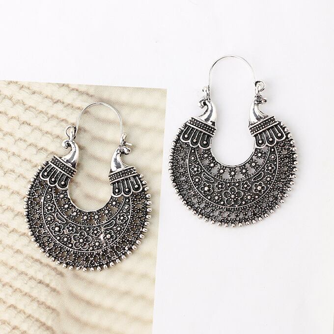 ピアス レディース フープピアス シルバー ヴィンテージ レリーフ アジアン オリエンタル エキゾチック 大人っぽい ゆれる おしゃれ