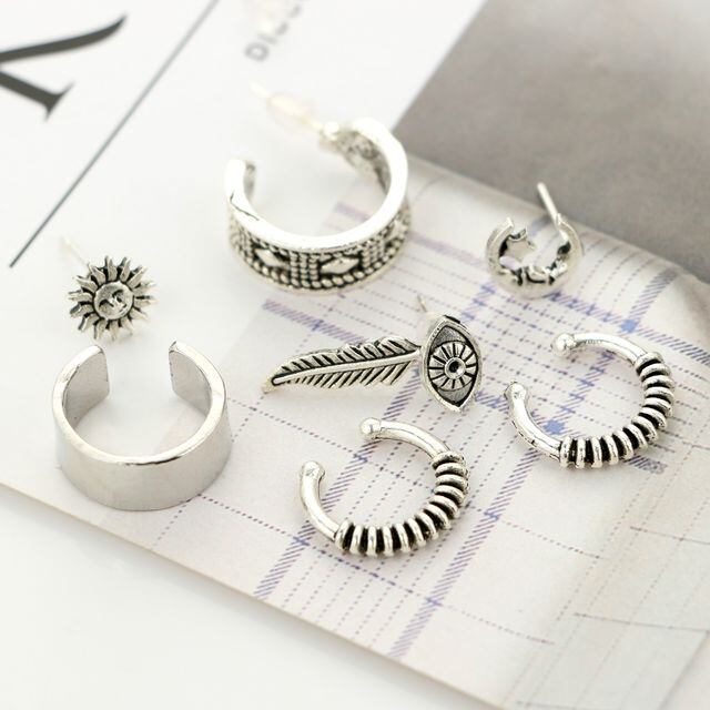 送料無料 ピアス メンズ フープピアス フープ イヤーカフ ピアスセット ピアス レディース ゆれる 夏 月 太陽 軟骨ピアス ピアス 7点set