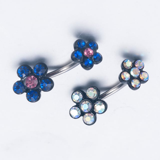 へそピアス 14g 可愛い 花 フラワー ダブルフラワー ステンレス 金属アレルギー対応 アクセサリー ピアス へそ ボディーピアス
