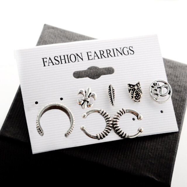 ピアス レディース かわいい ピアス メンズ 片耳用 ピアス セット 7個セット フクロウ ゆりの紋章 シルバー シンプル プレゼント