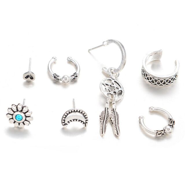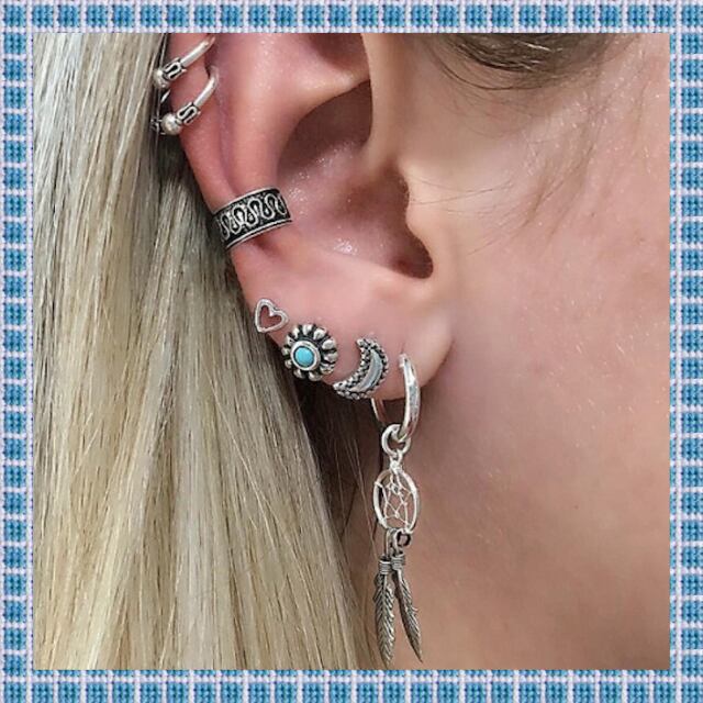ピアス レディース かわいい ゆれる ピアス メンズ 片耳 ピアスセット イヤーカフ 太陽 月 7個セット シルバー プレゼント