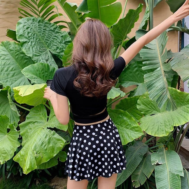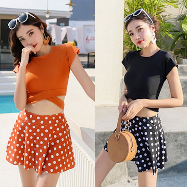 水着 レディース 体型カバー 上下セット タンキニ フレア ハイウエスト 2点セット セパレート オレンジ ブラック S/M/L/XL