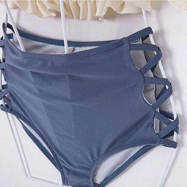 水着 レディース 体型カバー ビキニ 2点セット オフショルダー フリル シャーリング ハイウエスト 透かし リゾート コーデ M・L・XL