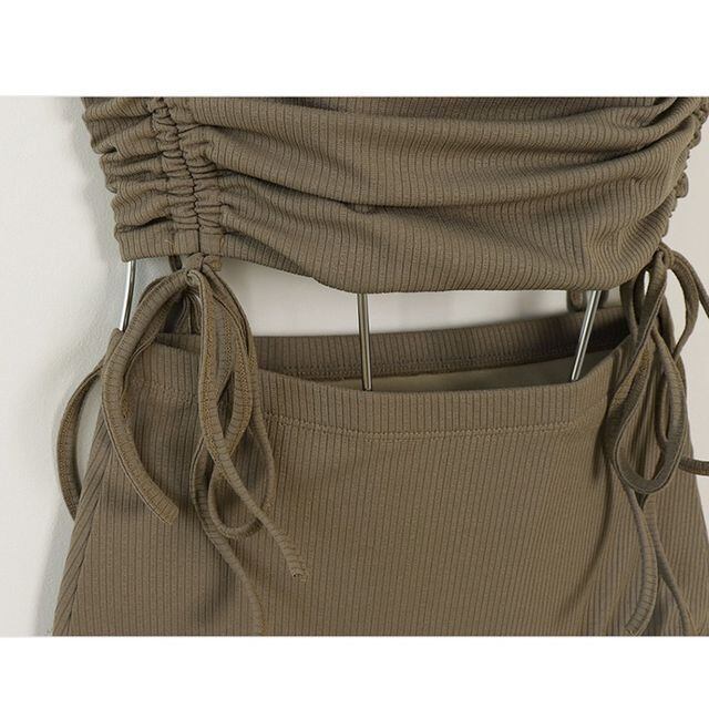 水着 レディース ビキニ 2点セット ギャザー ストラップ ハイウエスト キャミソール カーキ リゾート M/L/XL
