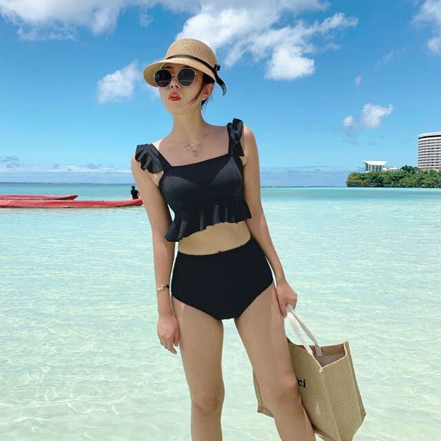 水着 レディース ビキニ 2点セット 水着セット ハイウエスト フリル 可愛い ブラック チェック リゾート M/L/XL