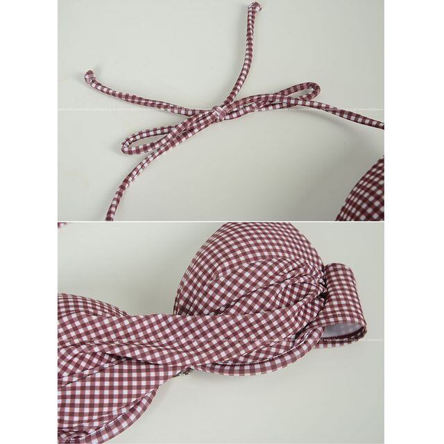 ギンガムチェック柄の大人可愛いホルターネックビキニ。