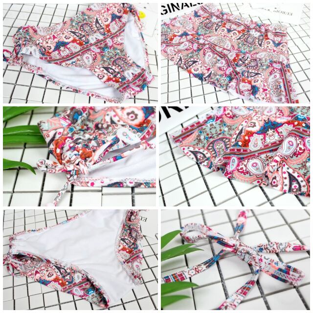 水着 カップル水着 ペアルック 水着 メンズ 水着 レディース 体型カバー 3点セット フリンジ エスニック柄 スカート 海水パンツ ペア水着 恋人 おそろい お揃い 可愛い ピンク系 M/L/XL/XXL