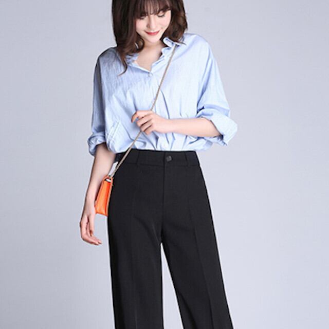 ボトムス パンツ ワイドストレート お呼ばれ パーティー オフィス 着回し エレガント フォーマル 無地 センタープレス カジュアル コンサバティブ シンプル マニッシュ ブラック S/M/L/XL/2XL