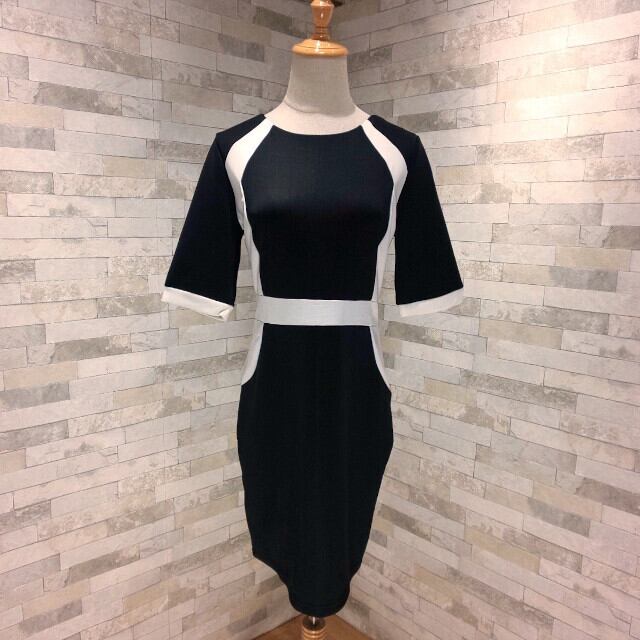 ワンピース モノクロ シェーディング 膝上丈 オケージョン シック モードバイカラー 無地 半袖 クルーネック タイト エレガント セクシー S/M/L/XL