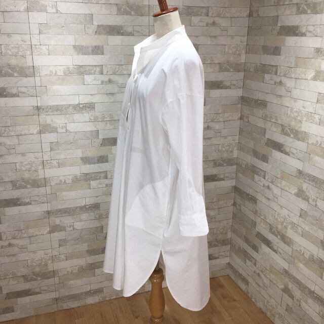 レディース シャツワンピースビッグシルエット バンドカラー 白シャツ サイドスリット マキシ丈 無地 長袖 スキッパーシャツ ワンピース カジュアル フリーサイズ