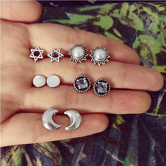 五芒星や三日月などのピアスセットです。