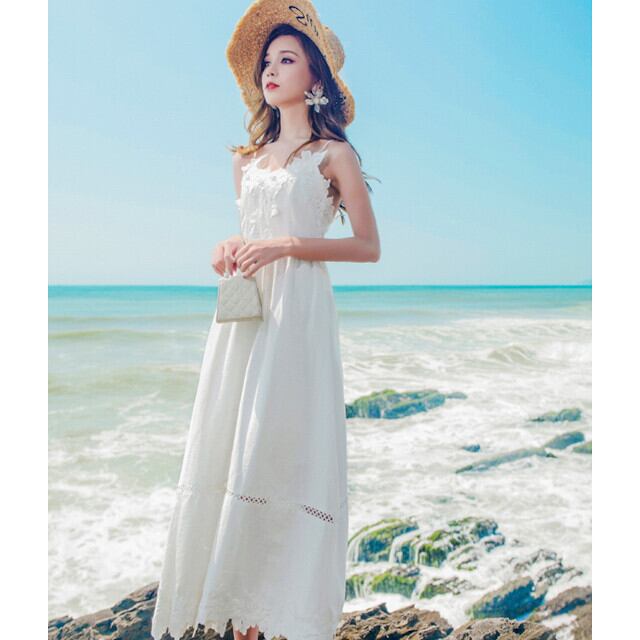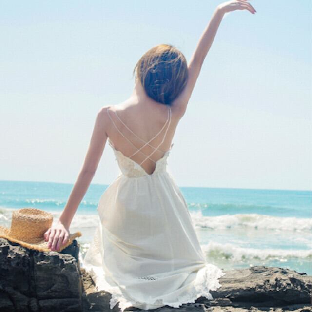 ワンピース クロスデザイン キャミワンピ レース 花柄 背中見せ 肌見せ Aラインリゾートホワイト 無地 ロング Vネック キャミソール ワンピース S/M/L/XL