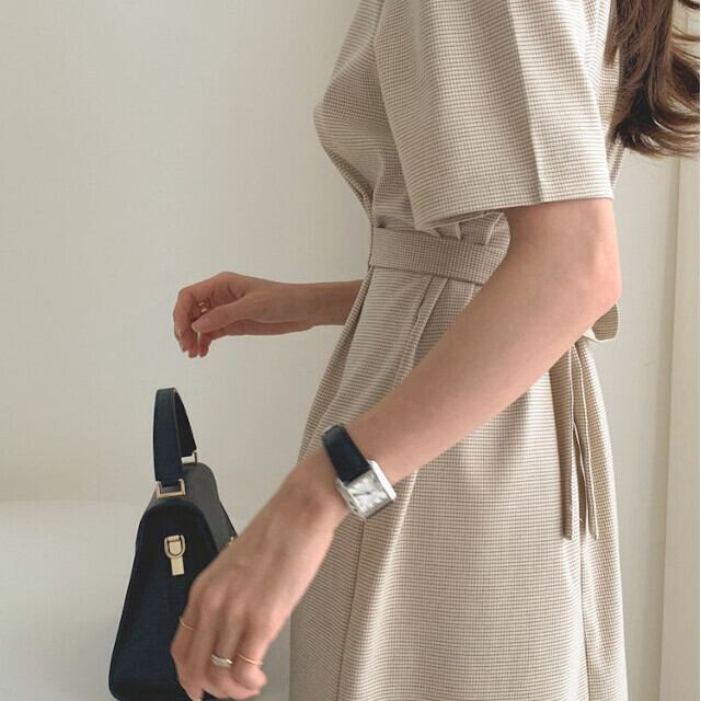 レディース ワンピース エレガント チェック オーバーショルダー タイニーチェック ピンチェック ワンサイズ 半袖 Vネック