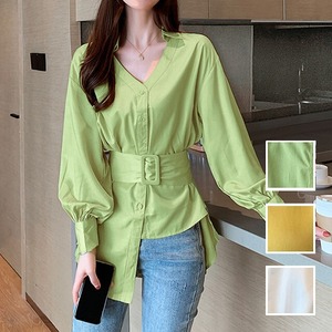 レディース トップス ブラウス シャツ アシンメトリー ロングカフス ドレープ 無地 ペールカラー シャーベットカラー 長袖 ドロップショルダーVネック スキッパー 襟付き S/M/L/XL/2XL