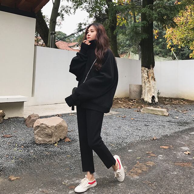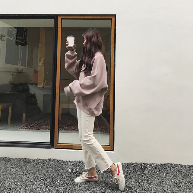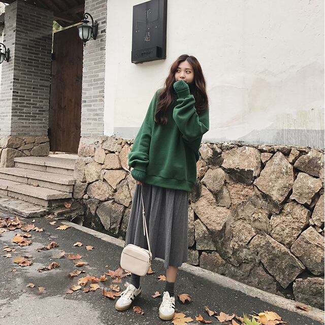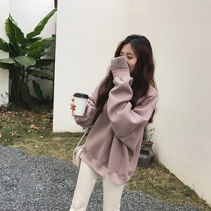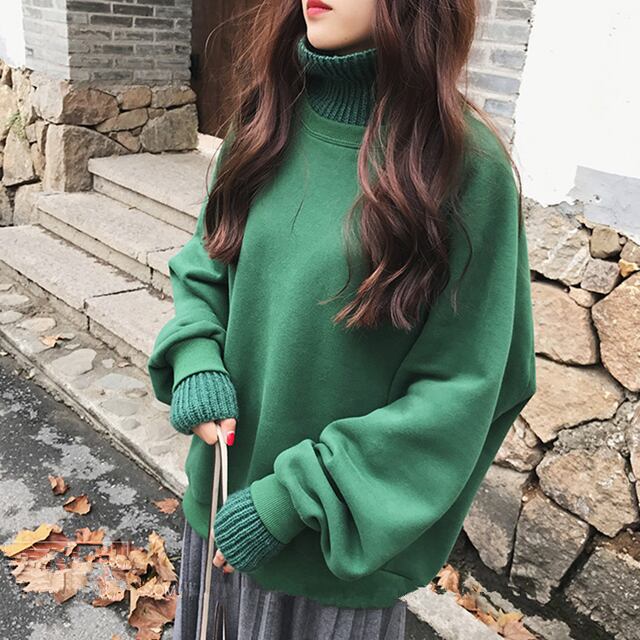 【予約販売】ニット レディース 秋冬 トップス ワンサイズ 長袖 ゆったり リブ リブニット スエット トレーナー セーター 異素材 シンプル プルオーバー 無地 重ね着風 M/L/XL/2XL グリーン/ライトピンク/ブラック