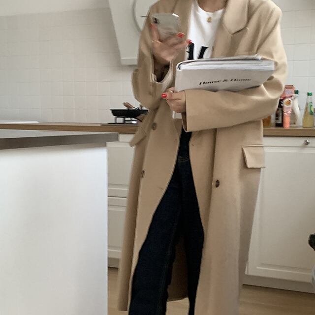 【予約販売】コート ロング丈 テーラード 襟 ダブルボタン ウールコート レディース 秋冬 アウター S,M,L 長袖 ゆったり ルーズ シンプル 無地