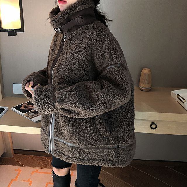 【予約販売】ジャケット ボア バイカラー パイピング トリミング フロントオープン ショート丈 ミドル丈 レディース 秋冬 アウター トップス ワンサイズ 長袖 ゆったり ルーズ シンプル 無地 ボリューム ハイネック